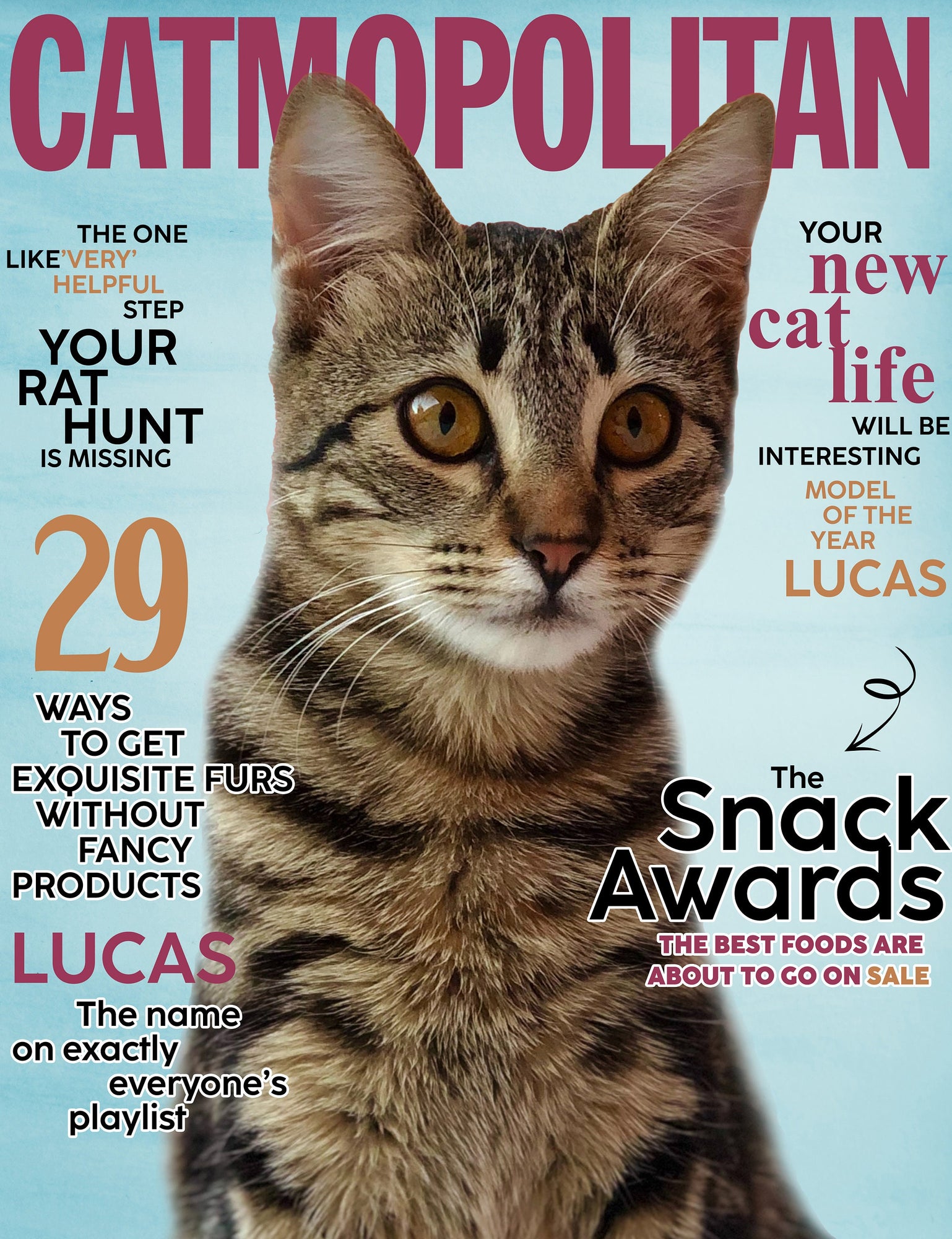 お写真入り個性化された猫のプリント | 雑誌の表紙 | ペットの肖像画 | カスタムペットアート