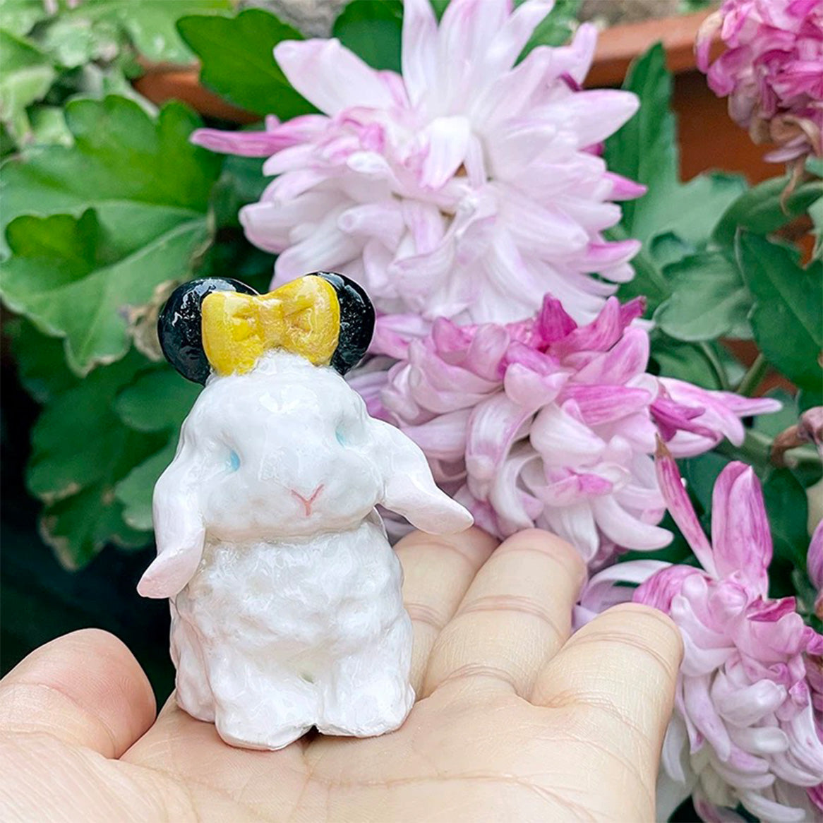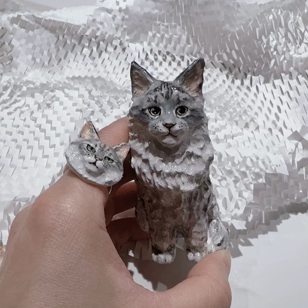 石塑粘土を使って、職人が一つ一つ丁寧に手作りしています。猫や犬、ウサギ、ハムスター、どんなペットもリアルに再現。細部までこだわって作っていますよ!