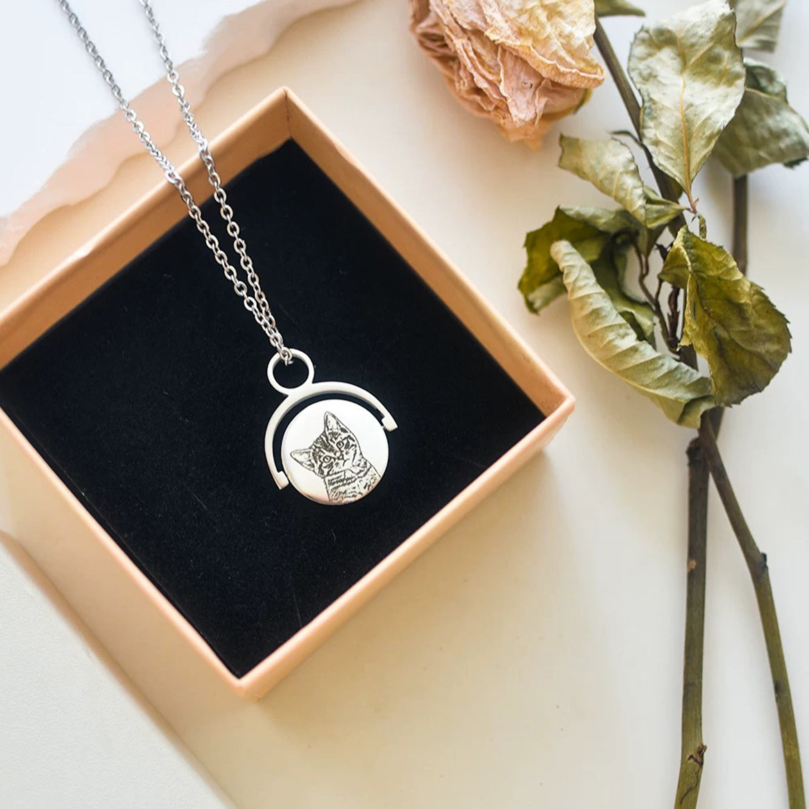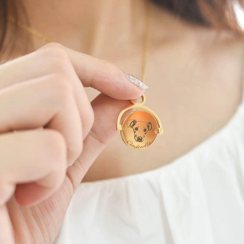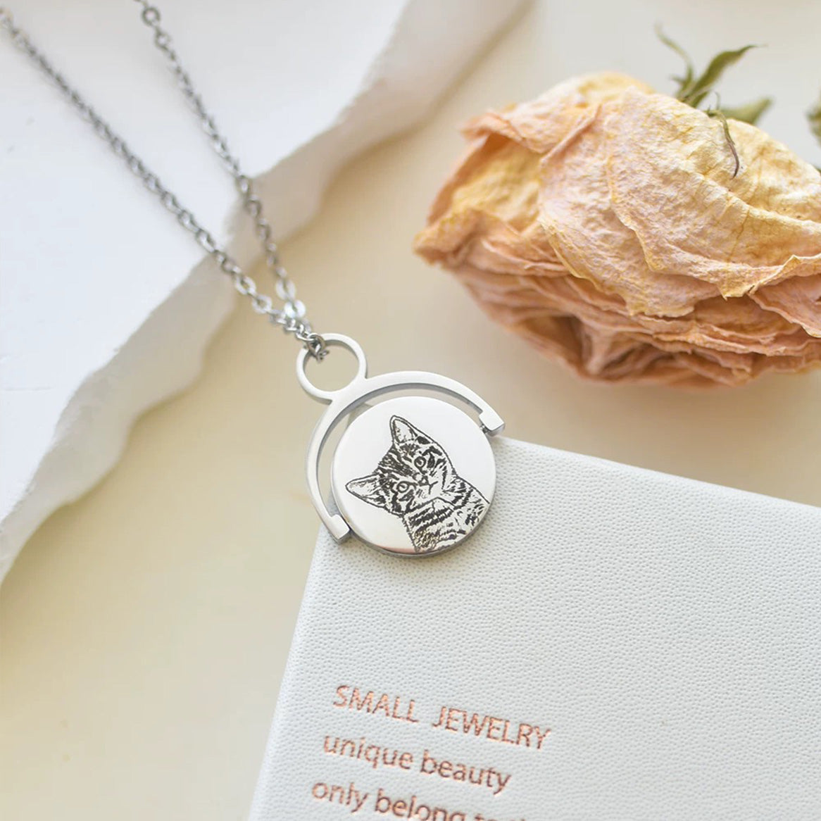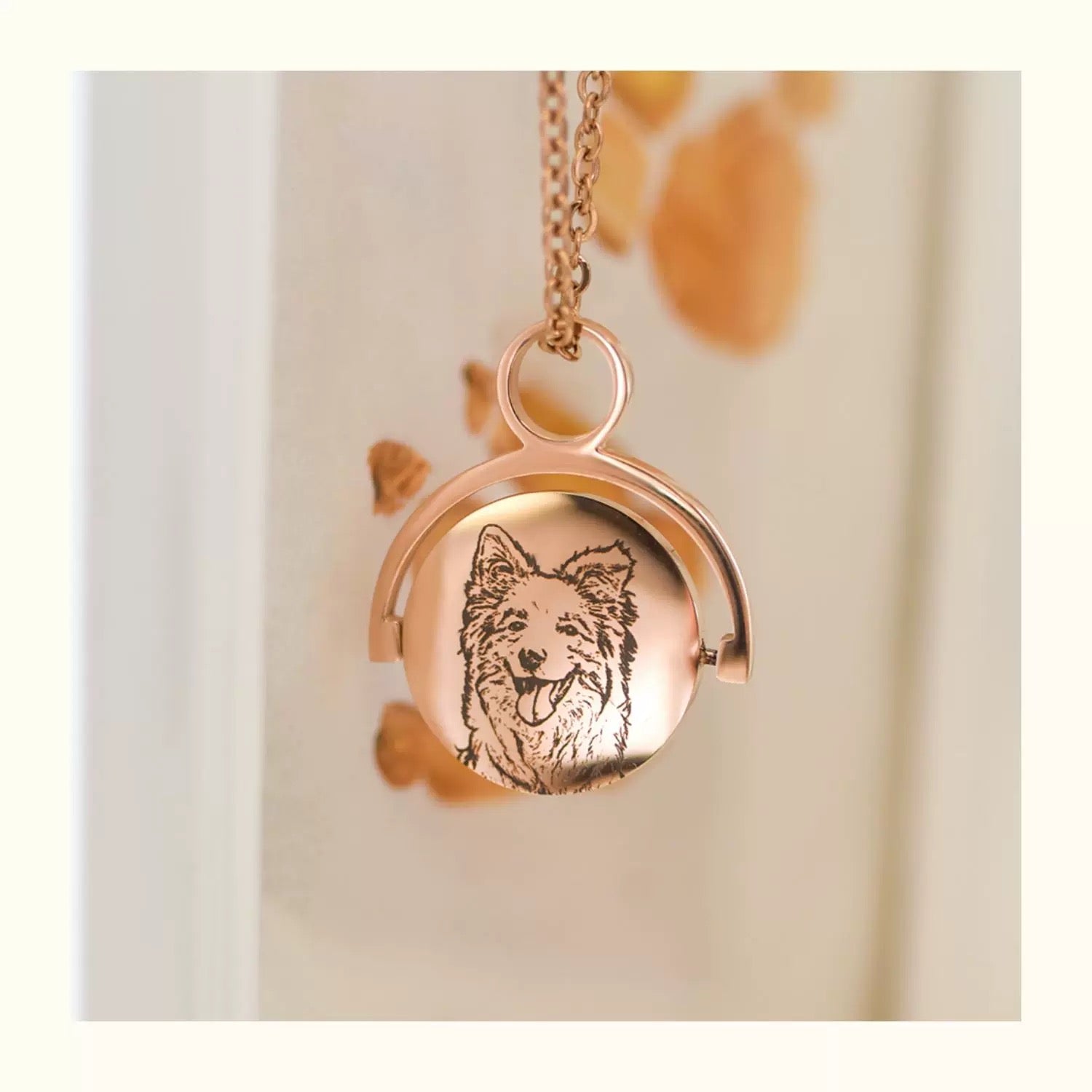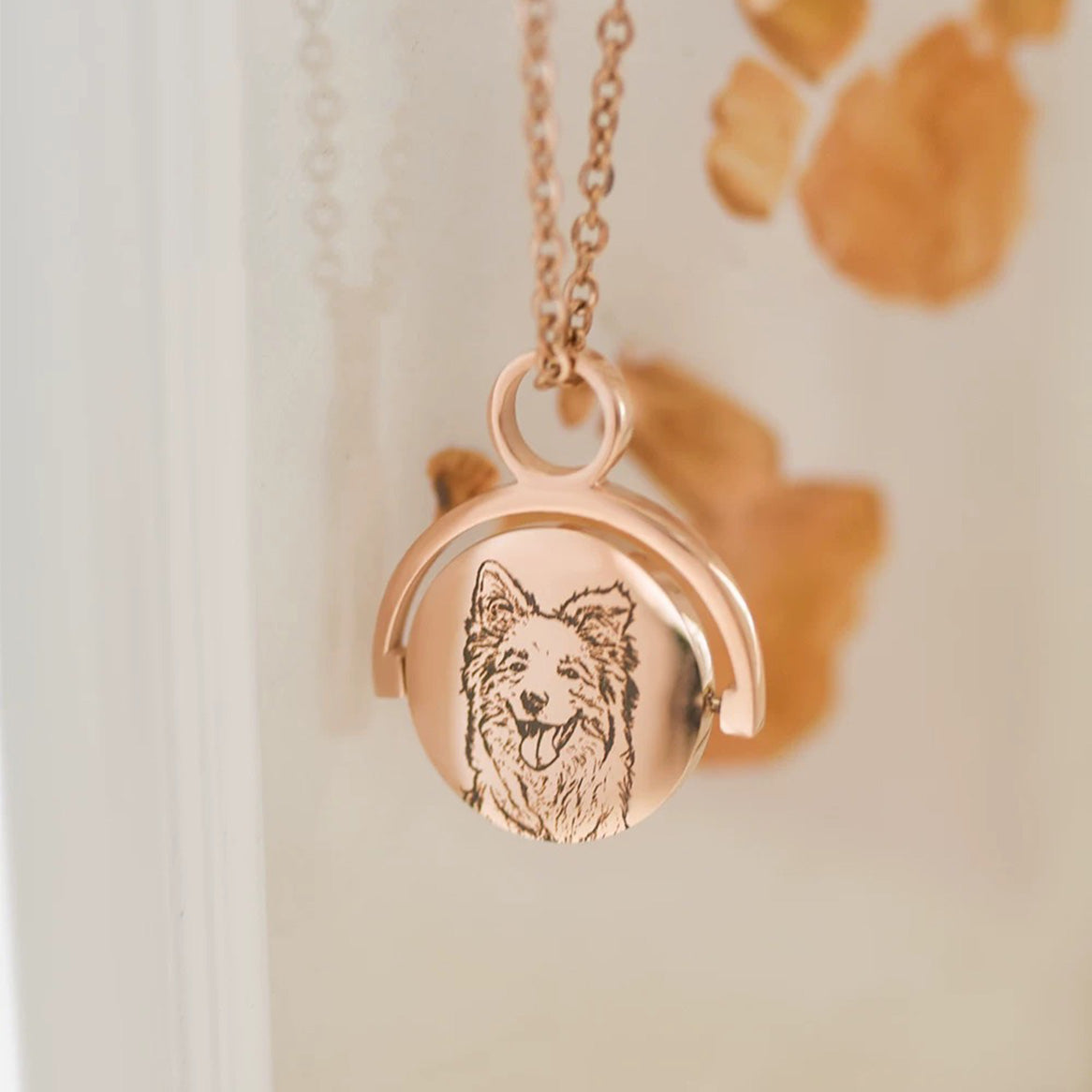 ❤️このペット写真カスタムの回転ネックレスは、愛するペットへのユニークな記念品です。