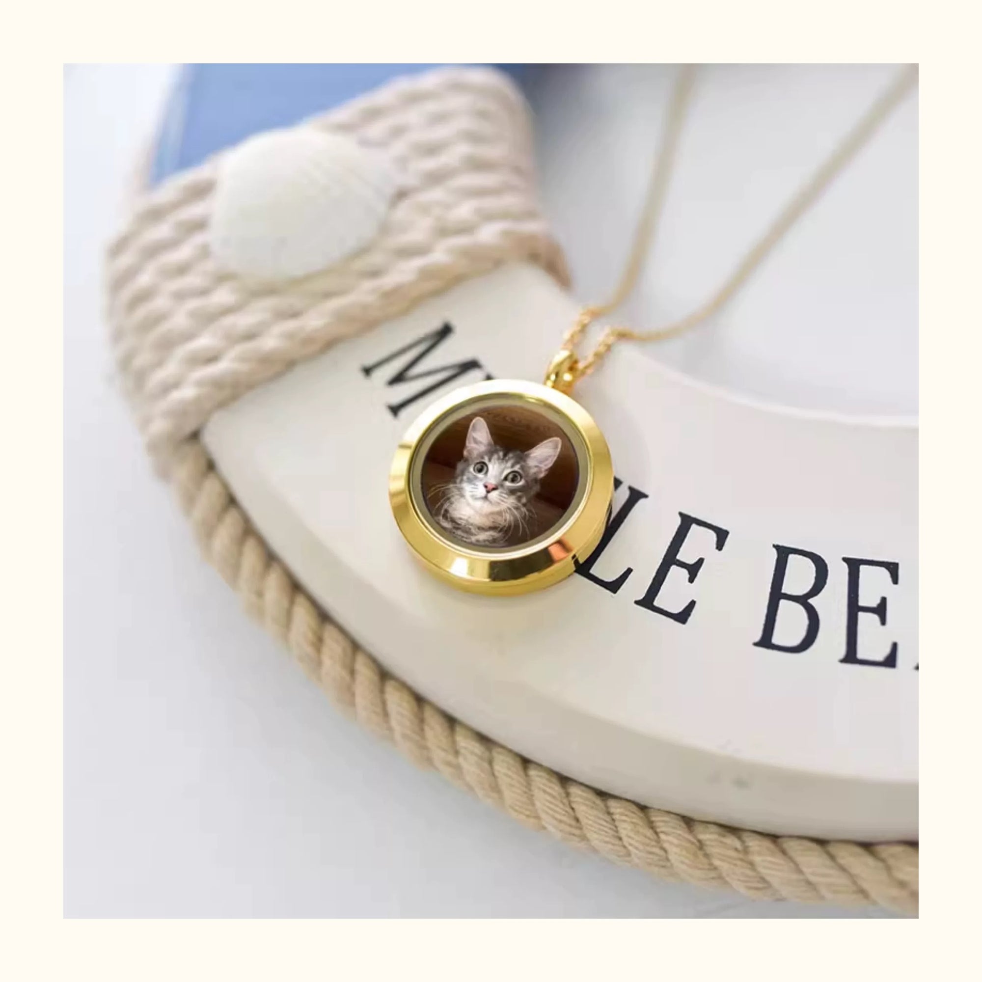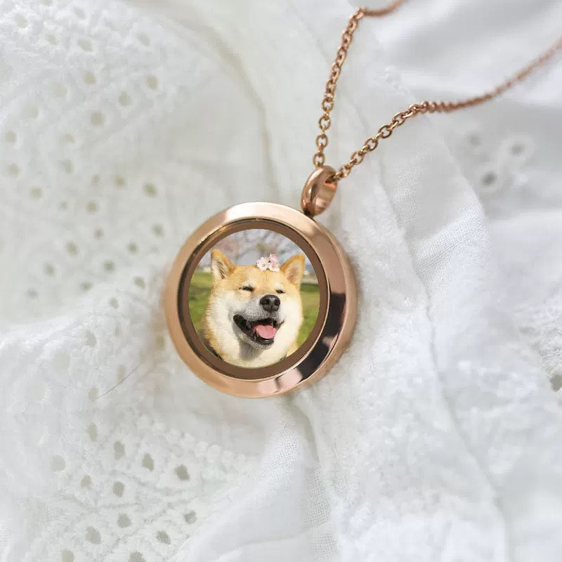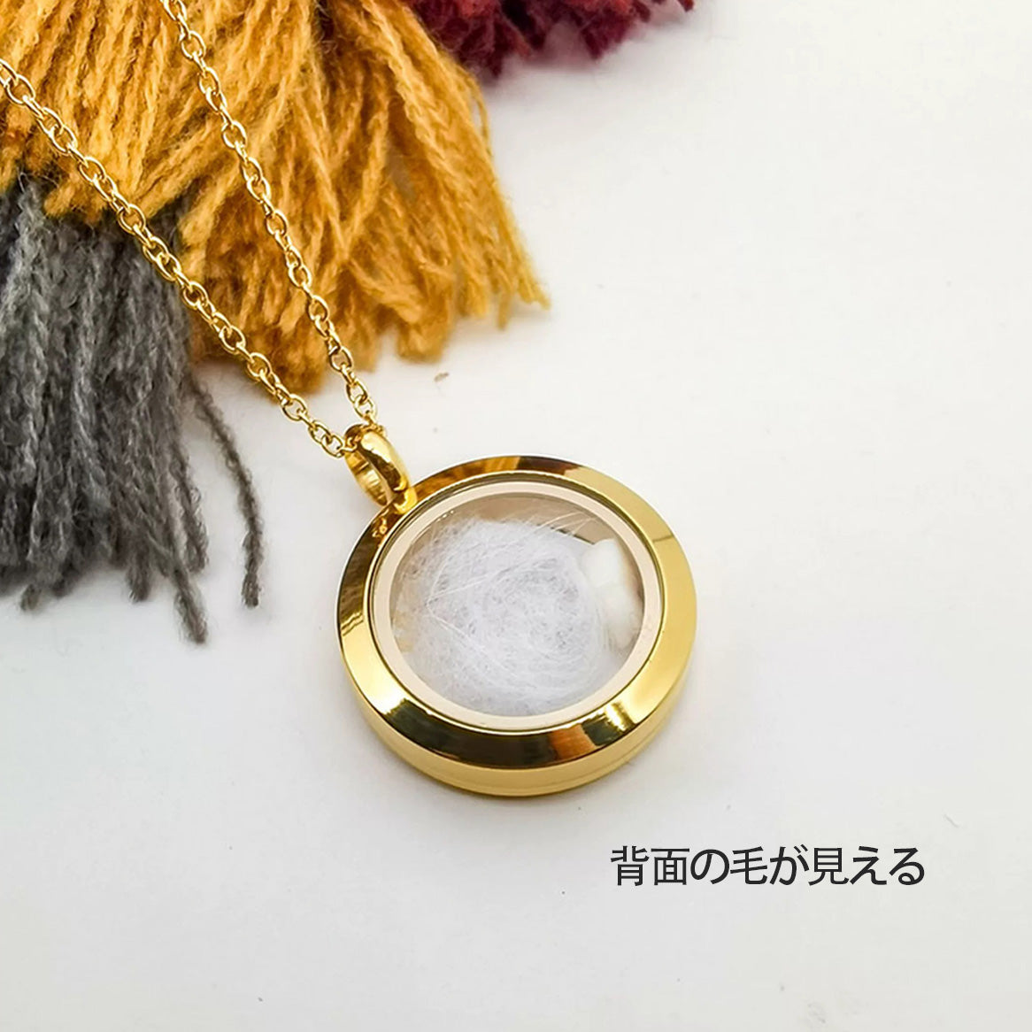 ✨ネックレスの正面にはペットの写真を高精細にプリントでき、背面はアクリルで作られているので、内部に保存されたペットの毛や歯がはっきり見えます。