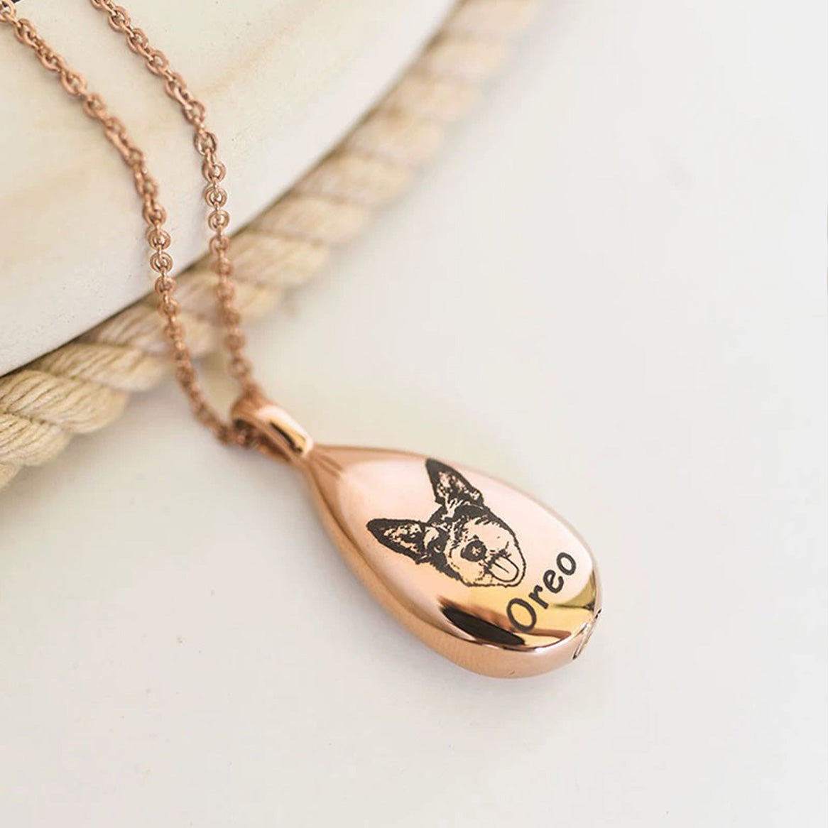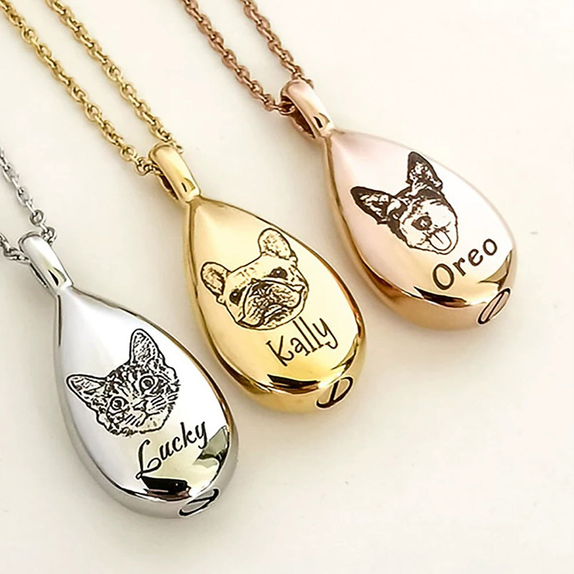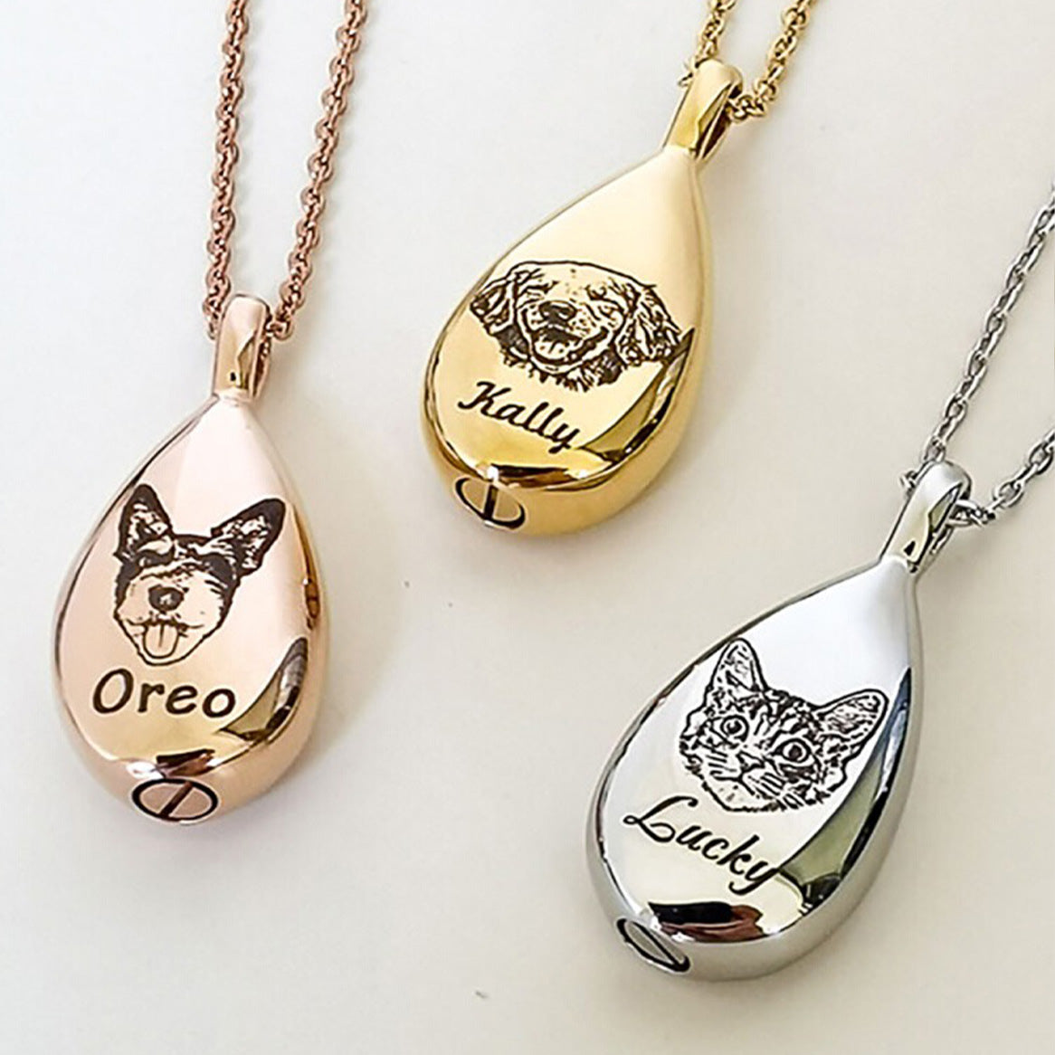 「癒しのネックレス」ペット 記念 猫・犬の写真カスタム 水滴ネックレス 遺骨保存可能 ユニークで 個性的なカスタマイズ